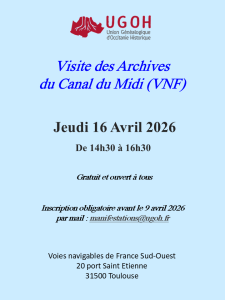 UGOH va organiser le 16 avril 2026 une visite exceptionnelle des archives du Canal du Midi,